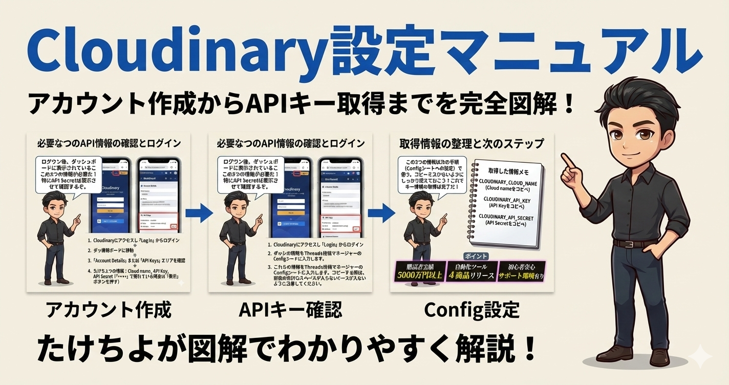 「Cloudinary」のアカウント作成 → APIキー取得 → スプレッドシートへの設定