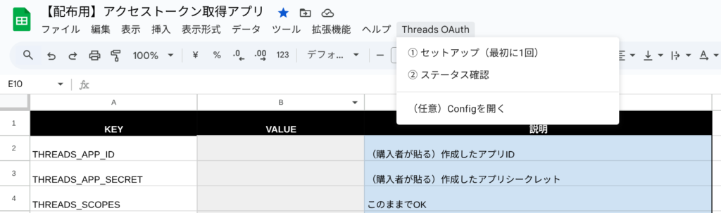 この記事は、配布したスプレッドシートを使ってThreadsの長期アクセストークン(60日間有効)を取得し、自動投稿ツールなどにセットするための手順書です。