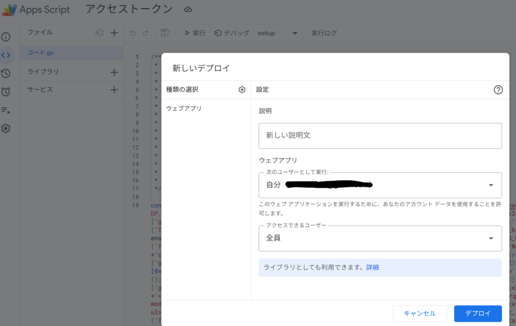 Step4:Webアプリとしてデプロイ(ここが最重要)